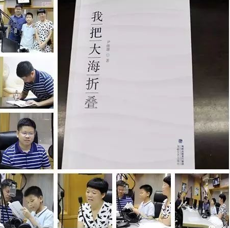 尹继雄及家人(爱人王丽,儿子尹品俊)携新书《我把大海折叠》做客晋江市广播电视台的情景。