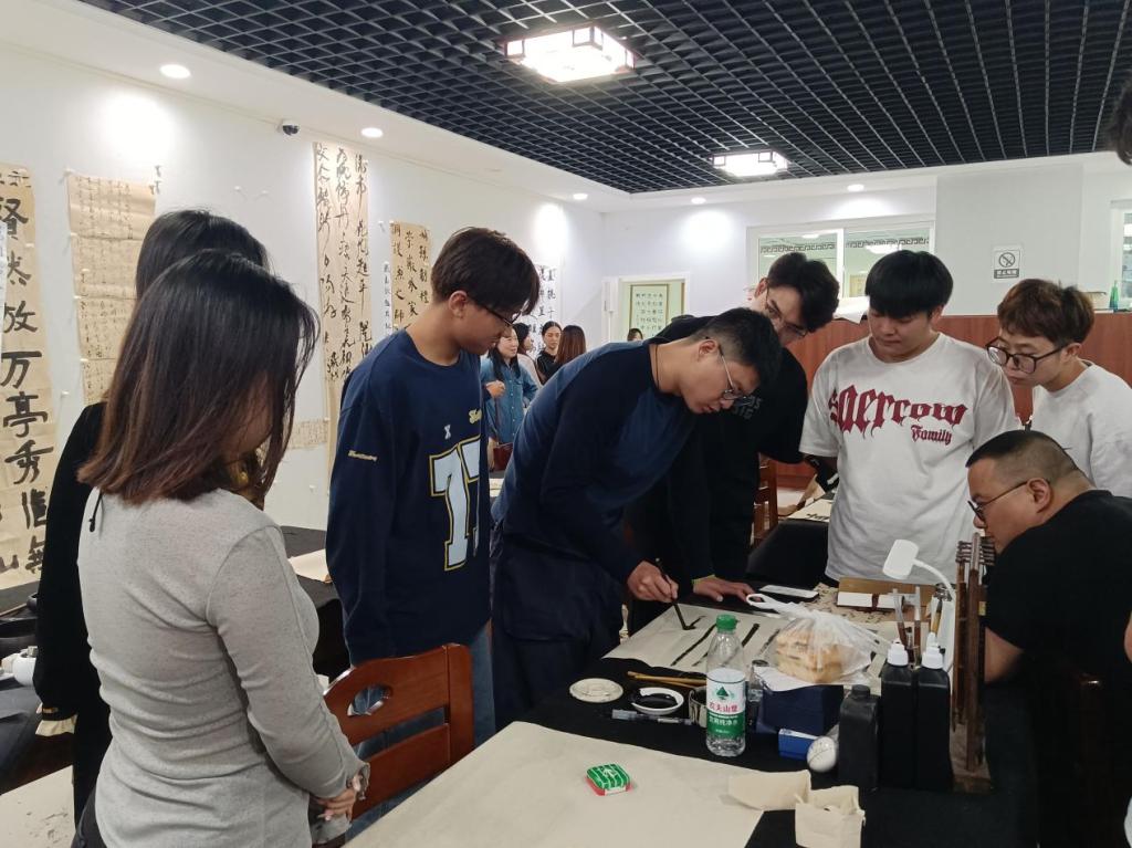 随后,全体在校书法学专业师生在崇文楼B505汇聚一堂,两位校友分享书法篆刻入展创作经验。龚官雨校友提出了两个建议:一是大一新生因尽快从艺考的训练模式中脱离出来并逐步向投展方向发展。二是现阶段不光只提升书法技艺,增强书法理论常识和综合素养是必不可少的。