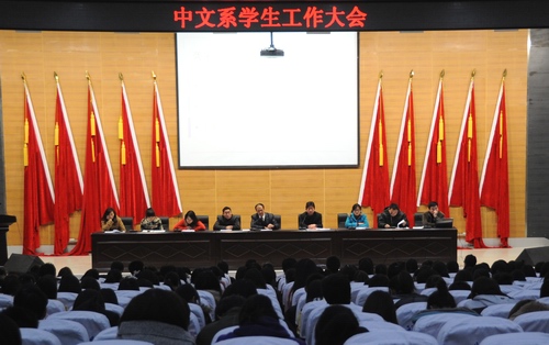 本网讯 学生记者崔少卿报道:为了进一步强化系风、学风、班风建设,深入贯彻实施学生素质教育,3月22日晚7点,中文系学生工作大会在十堰校区学术报告厅召开,该系主任龚举善、副主任郝文华、党总支副书记曹国军及该系全体辅导员和学生干部共400余人参加会议。