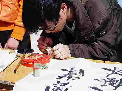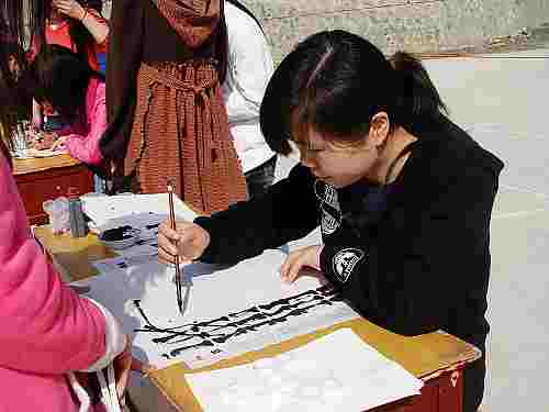 (本网讯 记者孟玉婷) 3月27日阳光明媚,由书画协会十堰分会、中文系分团委、环保协会十堰分会联合主办的第三届十堰市大学生书画友谊联赛在十堰校区篮球场举行,80余名选手前来参加比赛。