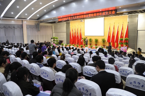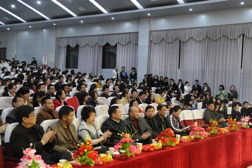 3月26日晚,学术报告厅盛装华彩,高朋满座。中文系喜迎“十八大”诗词朗诵会暨“沧浪诗社”成立大会在此隆重举行。十堰市教育学院院长严永金、市文联副主席柏冬明、市诗词学会副主席周先鹏、校领导杨郧生、程明安、周进芳、陈俊、孙丽平及各教学系领导出席此次活动。