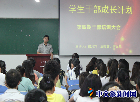 本网讯 学生记者高霞报道: 5月27晚7点,中文系学生干部成长工程第一期培训班——经验交流会在崇文楼A614隆重举行。系主任王进、党总支副书记刘韵等系领导出席了本次经验交流会。系主任王进对三位优秀学生干部的到来表示欢迎,并且要求在座的学生干部认真听取经验,取长补短,希望大家做一名优秀的学生干部。