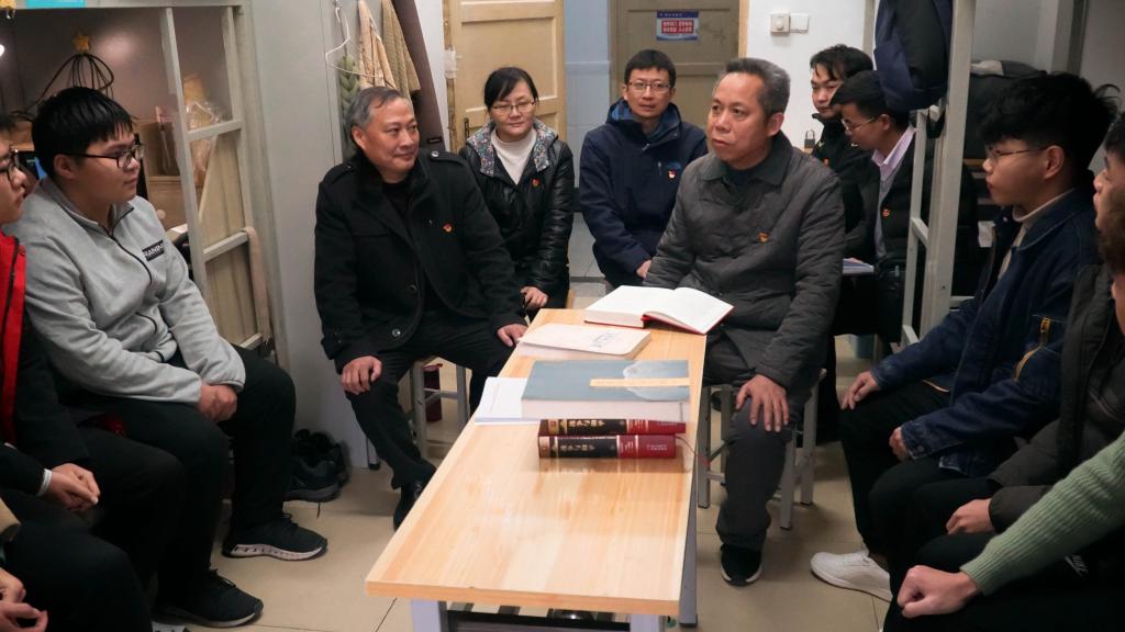 纪书记和几位同学逐一谈心,详细询问他们有什么困难,悉心回答同学们的问题。