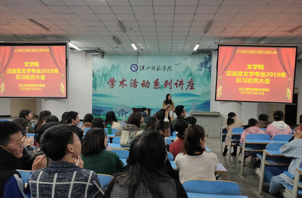 本网讯 通讯员 杨淑倩 报道:2019年11月21日下午六点整,amjs澳金沙门线路首页汉语言文学专业于明理楼c201教室召开了2019年见习动员大会。召开此次大会的目的是为了动员我院17级和18级汉语言文学专业的同学们积极的投入到即将到来的见习活动中。参加此次大会并为同学们答忧解惑的有我院党总支副书记任自玲老师,学生工作办公室主任彭涛老师,带队老师吴海燕、柳宇等。
