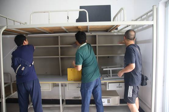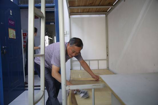 9月5日下午,院领导再次带领全体党员教师来到校区学生宿舍。老师们拿出提前准备的抹布,走进各自负责的宿舍擦拭床铺、桌椅上的灰尘,将新生宿舍打扫一新。