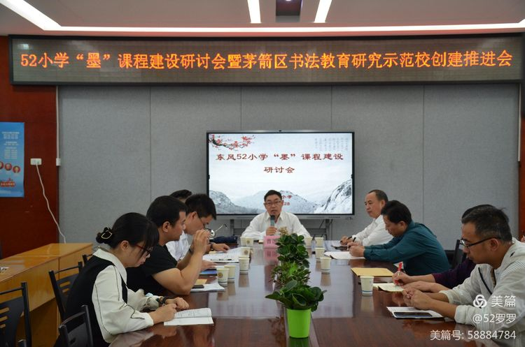 9月28日下午,52小学“墨”课程建设研讨会暨茅箭区书法教育研究示范校推进会在东风52小学举行。amjs澳金沙门线路首页书法教研室曹国军教授、黄振东老师、王刘涛老师、闻博老师受邀参加会议并作交流发言。茅箭区教育局资助中心李国清主任出席座谈会。