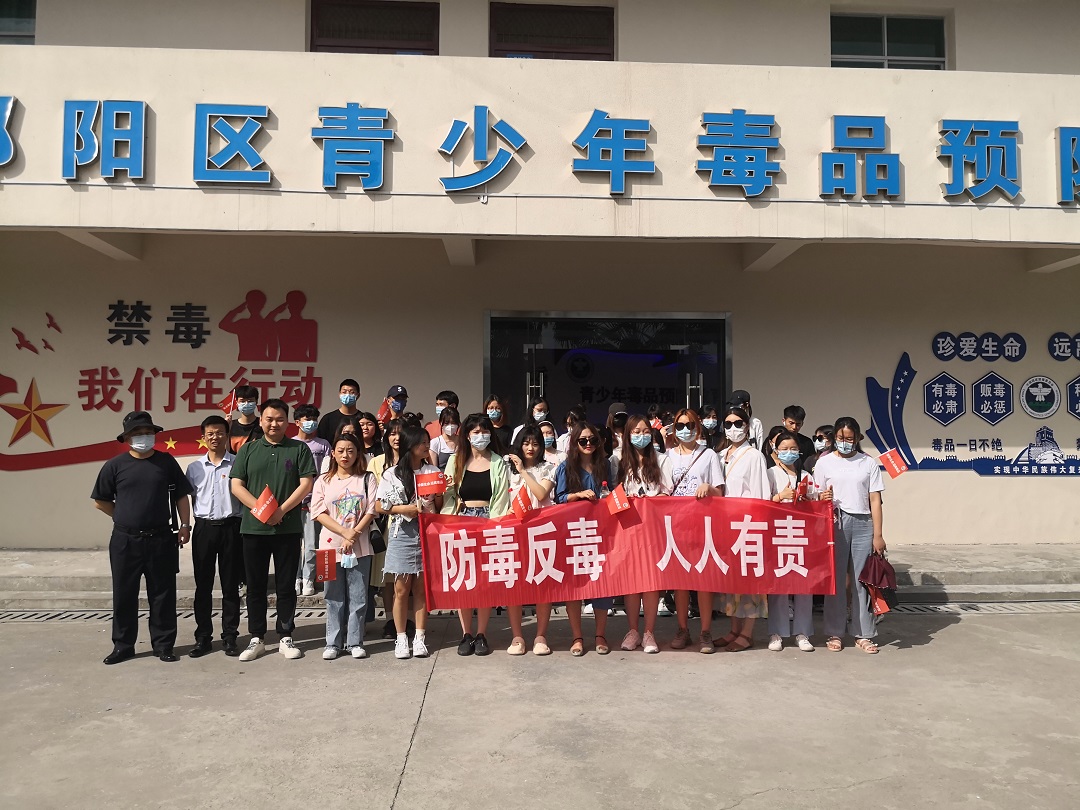 6月24日下午2:20,amjs澳金沙门线路首页广编专业40名学生在保卫处杨宗强副处长、罗洪老师及amjs澳金沙门线路首页学工办主任彭涛老师、辅导员曾晓东老师带领下,来到郧阳区禁毒教育基地参观学习。