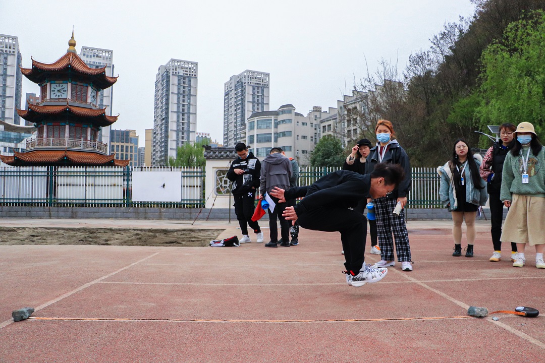 跳远赛场上,运动员们极力舒展着自己的身体。