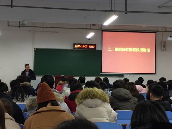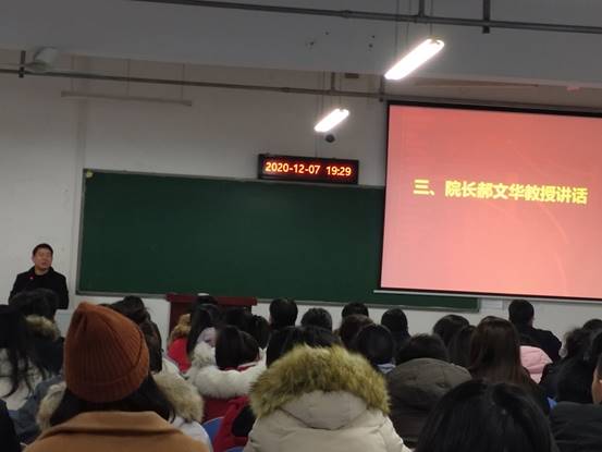 2020年12月7日晚,amjs澳金沙门线路首页2021届本科生毕业论文推进会在崇文楼A614召开,院长郝文华教授、副院长曹国军教授、副院长赵崇璧副教授,及毕业论文指导老师、2021届本科毕业生参加了此次会议。会议由辅导员吴海燕老师主持。