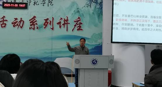 随后,谭教授以严如熤的田野诗作“秦巴一叹”、“秦巴二歌”、“秦巴三吟”、“秦巴三咏”等给大家呈现了秦巴山田野的诗意,并通过“木厂咏”、“秋获词”、“后乡兵行”等诗作分析了严如熤的诗作特点。