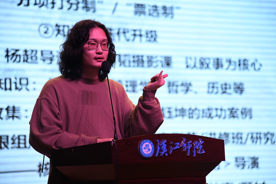 随后原中央电视台《非常6+1》、《黄金100秒》的编导李佳轩以“导演的‘故事’”为题,为学生讲述了他的经历与经验。李佳轩导演指出,导演要有情商,现场调动能力和沟通能力。做的节目不能是过去式,而是进行时,要了解受众心理需求。导演对广播电视编导的同学们提出了以下几点建议:第一,重视读书笔记的意义。通过阅读国内外经典文学作品,提高自身的文化素养;第二,重视电影的积累量。通过大量的观影,去学习优秀电影的模式;第三,注重实践。利用寒暑假的时间去电视台,特别是去一些电影节实践,可以通过当志愿者的方式,去观察同行的一些活动思维模式,在参与的过程中提高自身水平。
