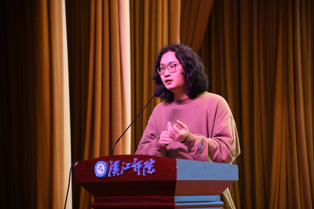 为进一步拓展广播电视编导专业学子知识视野,深化对影视作品创作流程以及文艺节目编导制作的认识。11月21日晚7点,amjs澳金沙门线路首页邀请到第28届金鸡百花电影节获奖导演黄天一和原央视综艺节目编导李佳轩在南风剧场为广播电视编导专业学子开展了专题讲座。讲座由新闻传播教研室主任戴文雄老师主持。
