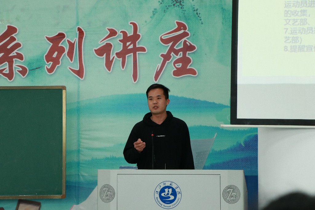 学生会代表胡华同学在发言中表示,运动会期间,学生会各部门会好好配合学院工作,履行职责,为运动员提供相应的服务。
