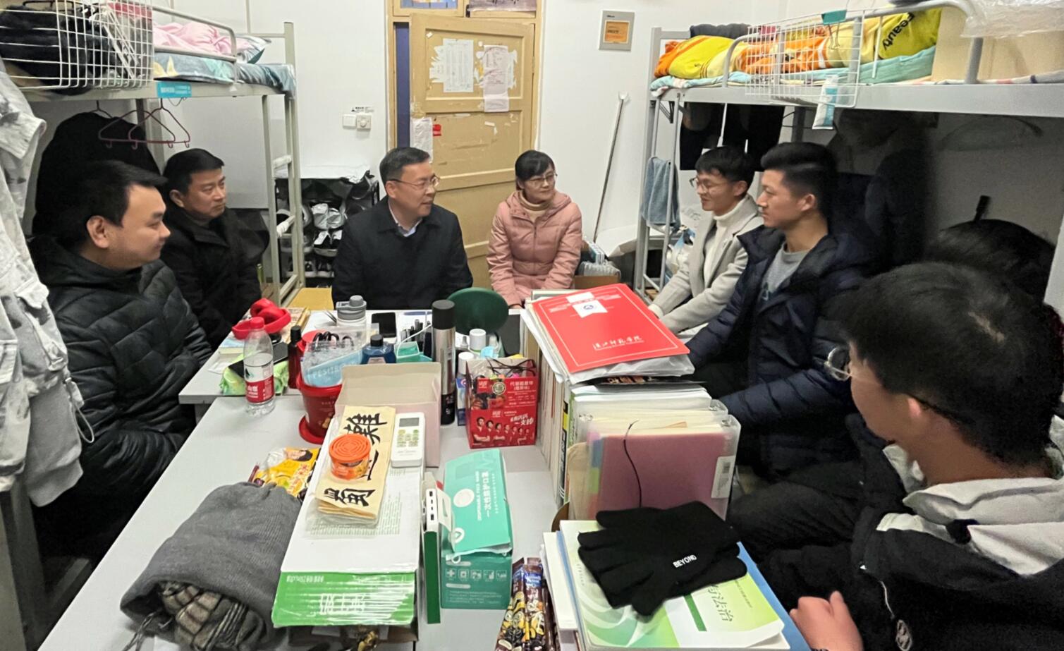 付校长和同学们围坐在宿舍,亲切地倾听同学们畅谈自己的大学生活和理想,适时地给大家做出指点。随后,他结合大家的实际,从学习、生活和安全三个方面给同学们提出了希望和建议。付校长说,为了给同学们创造更好的学习生活环境,学校正在努力进一步改善办学条件,体育馆、新宿舍楼、实验楼等项目正在紧锣密鼓地实施,同学们都是学校发展的见证者。付校长勉励大家,大学的时光很珍贵,同学们要用勤奋和刻苦为青春增色,夯实专业基础,拓展兴趣爱好,锻炼强健的体魄,努力提升综合素养,力争实现德智体美劳全面发展。临近期末,付校长嘱咐大家积极备考,争取优异成绩;遵守疫情防疫规定,回家途中做好个人防护,平安回家。