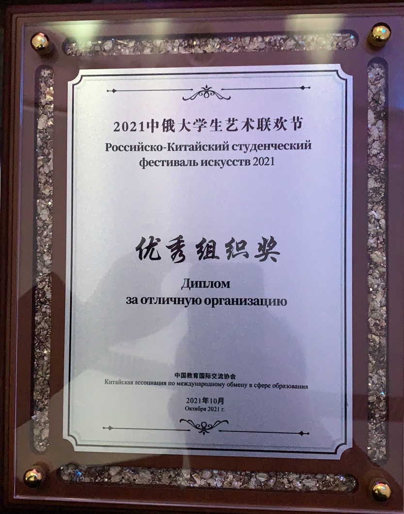 2021年10月14日,2021中俄大学生艺术联欢节颁奖典礼及展演活动在吉林长春成功举办,amjs澳金沙门线路首页荣获优秀组织奖。