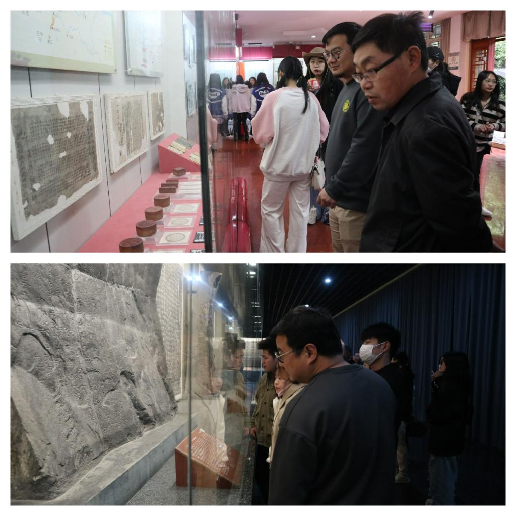 4月18日上午,参观偃师博物馆。偃师博物馆位于河南省洛阳市偃师区,馆内珍藏大量珍贵碑刻,其石刻艺术长廊展出了在偃师出土的历代石刻,其中不乏书法名碑,诸如唐颜真卿书《郭虚已墓志》、西晋《荀岳墓碑》等。