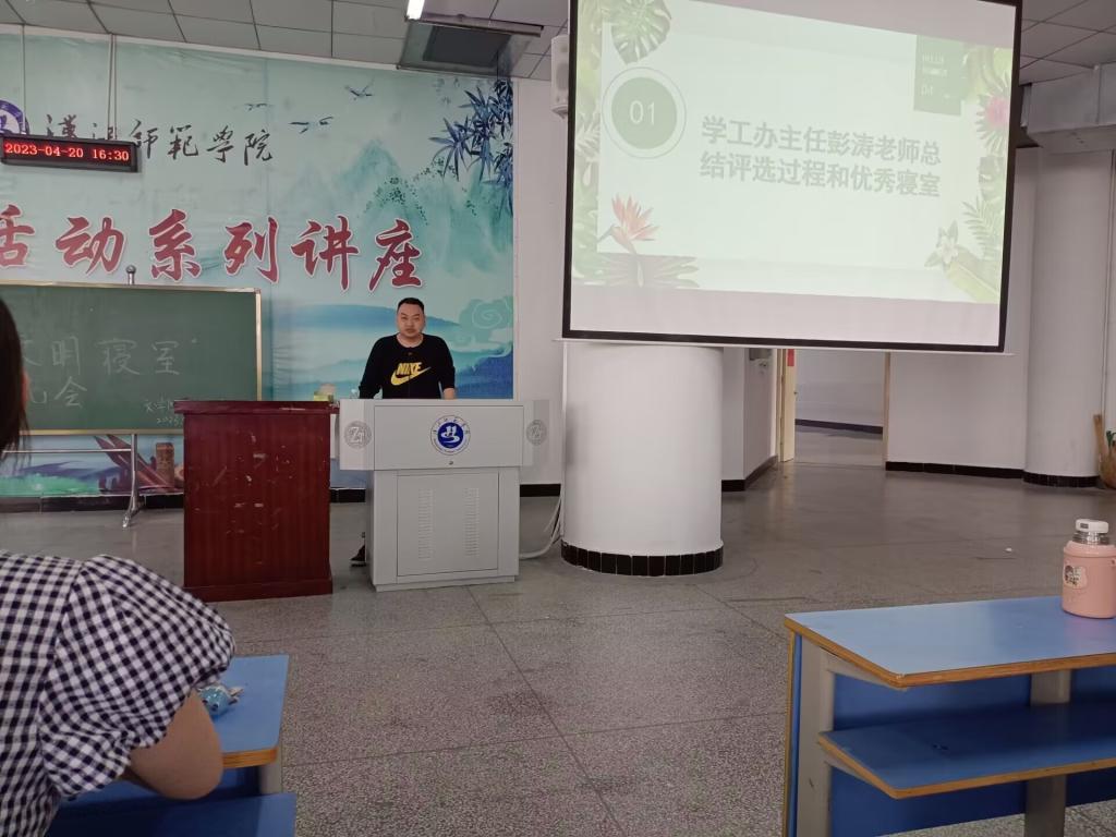 2023年4月20日下午,amjs澳金沙门线路首页“十星级文明宿舍”经验交流大会在明理楼C201举行,党总支副书记任自玲老师、学工办主任彭涛老师、amjs澳金沙门线路首页全体辅导员老师、amjs澳金沙门线路首页20级、21级、22级全体寝室长及学生干部参加此次经验交流。