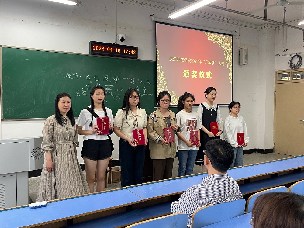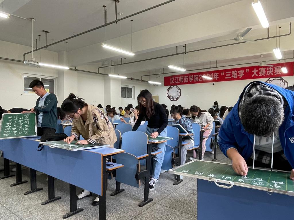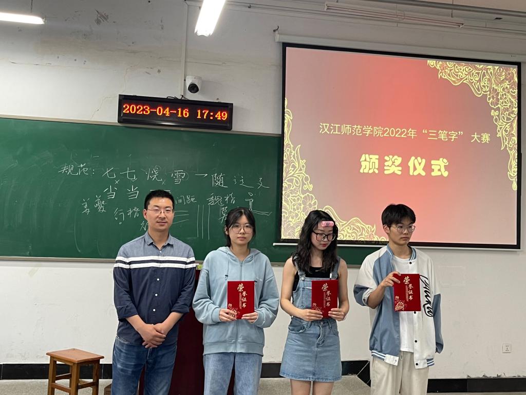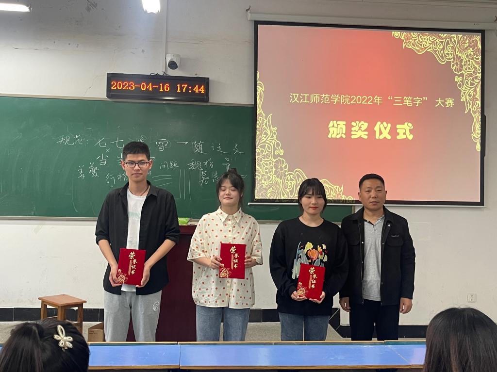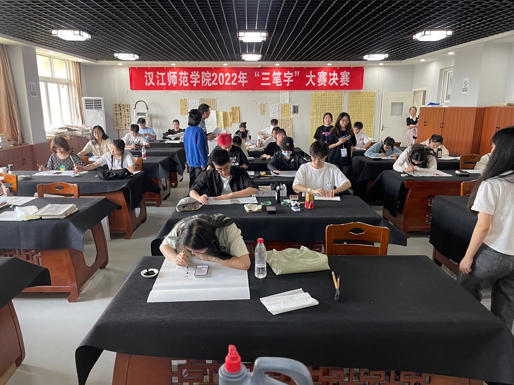 4月15下午,由教务处主办,amjs澳金沙门线路首页、湖北名师工作室(汉语言文学学科)、书法文化研究中心联合承办的汉江师范学院2022年“三笔字”大赛决赛在崇文楼A313落下帷幕。