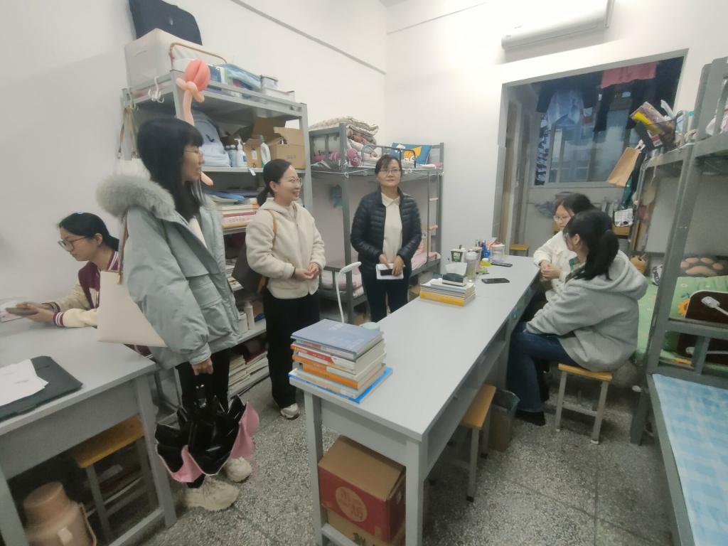4月4日下午,amjs澳金沙门线路首页党总支副书记任自玲、学工办主任彭涛带领各专兼职辅导员老师走访amjs澳金沙门线路首页学生宿舍,对参与十星级文明宿舍创建的宿舍进行指导和验收。