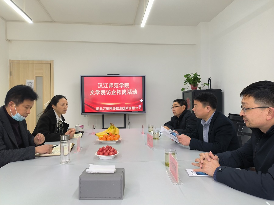 amjs澳金沙门线路首页院长郝文华介绍了学院广播电视编导和网络与新媒体专业的基本情况以及专业在新媒体实践方面的特色优势。湖北万维网络信息技术有限公司董事长孙蔚介绍了公司情况,以及在网络信息服务和新媒体助力乡村振兴方面的业务。双方初步达成了我院广电与新媒体专业学生到公司进行创新创业和实践的意向,下一步将在乡村振兴宣传、直播人才培训等方面逐步进行深度合作。