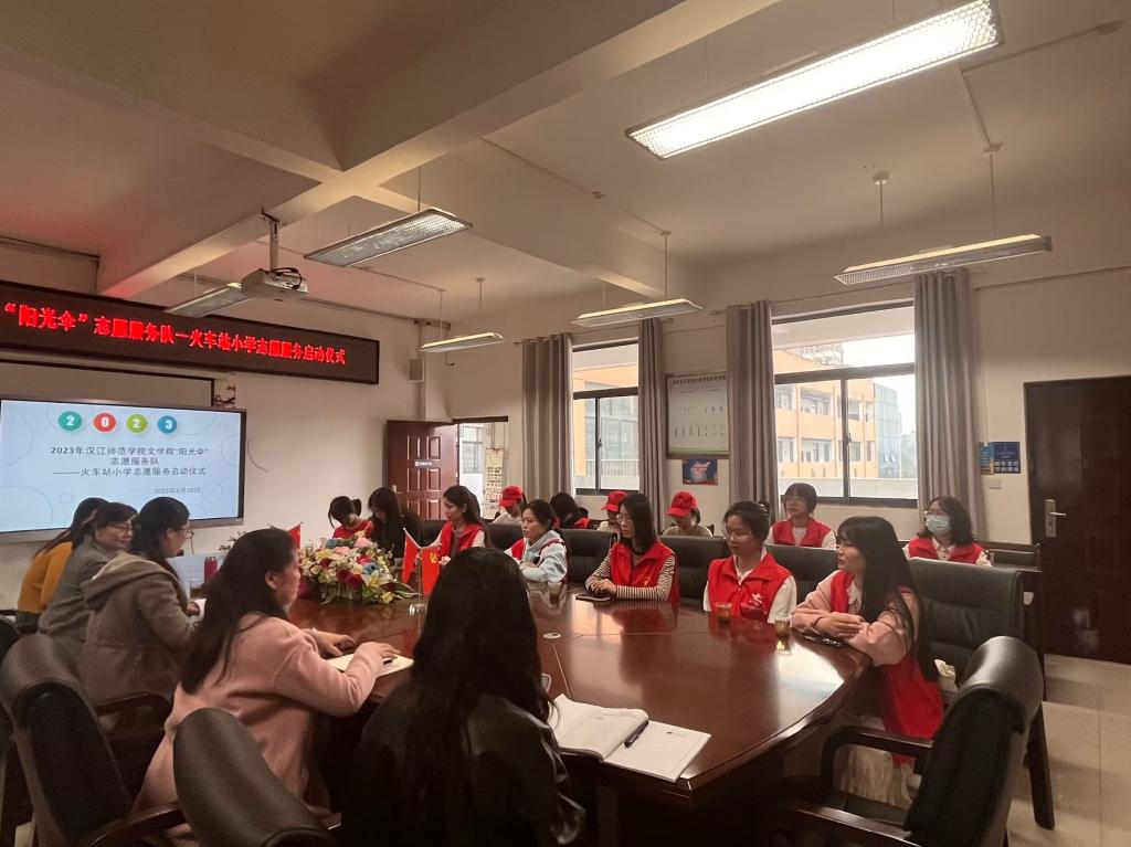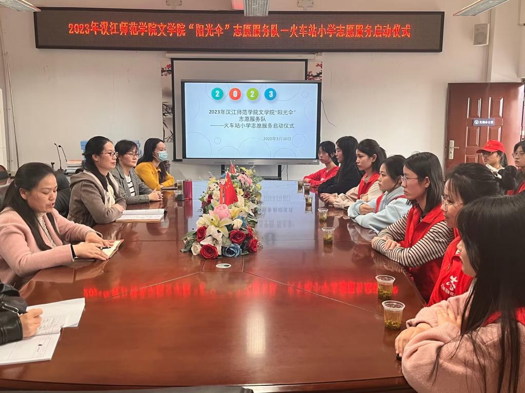 3月10日下午,amjs澳金沙门线路首页阳光伞志愿服务队的15名成员在学院党总支副书记任自玲、辅导员郑胜男老师的带领下,来到十堰市火车站小学,与该校领导老师共同开展了2023年爱心助教志愿服务活动的启动仪式。