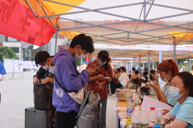 9月16日上午七点整,22级新生正式开始入学报道,amjs澳金沙门线路首页志愿者拿出十足的精神引导文院新生进行核酸采集、行程码健康码检测、录取通知书身份核对等工作。同时,志愿者们协助新生搬放行李,一切都在紧张与兴奋中进行。