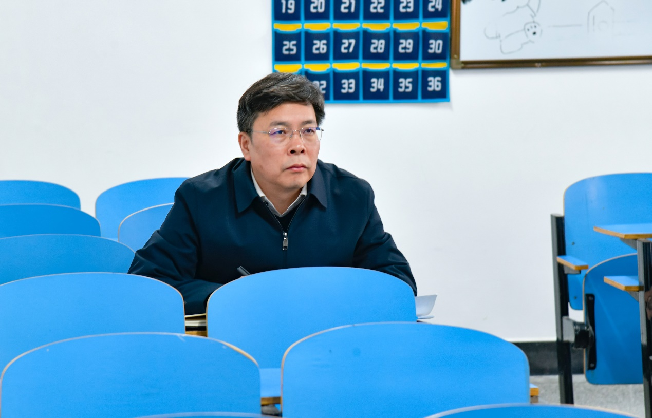 课堂上,付永昌聚精会神地听课,不时做着笔记,留心观察课堂氛围,详细记录听课感受和教学建议;师生们精神状态良好,授课教师准备充分,教学思路清晰,学生积极参与课堂教学,师生互动良好,课堂氛围活跃;各项教学设施运行正常,教学服务保障到位,教学秩序良好。