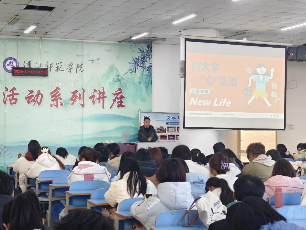 11月21日中午,amjs澳金沙门线路首页在崇文楼C201教室举办主题为“新大学,‘心’生活”的心理健康讲座,该讲座由学工处心理健康中心指导,amjs澳金沙门线路首页承办重要的大学生心理健康活动,2024级本科新生参与本次活动。