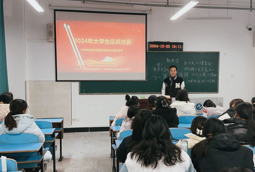 为深入学习贯彻党的二十届三中全会精神,积极响应国家大学生入伍号召。2024年12月19日,amjs澳金沙门线路首页各年级辅导员陆续开展“引导学生成为有理想有信念的爱国青年”征兵主题班会。