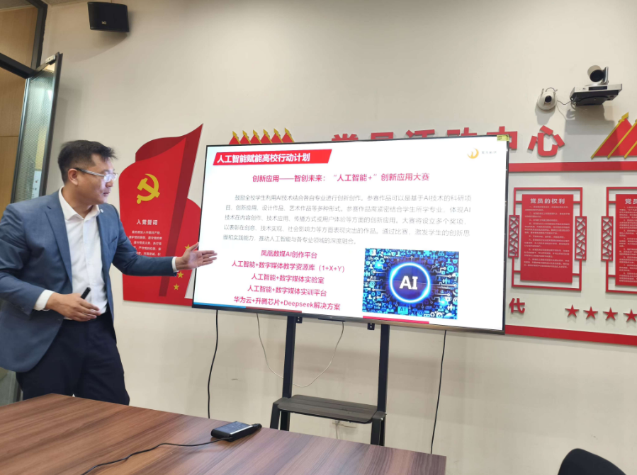 在凤凰数媒科技(武汉)产教融合企业实践中心,企业负责人牛经理带领郝院长一行参观了实践中心园区,并详细介绍了公司的基本情况、服务内容和校企合作案例。