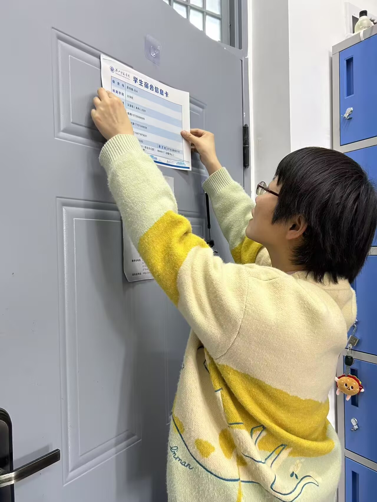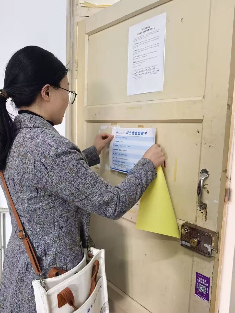 活动中,走访老师深入学生宿舍,张贴包含宿舍安全提示、文明公约、紧急联系人等信息的单页,为同学们提供便利的同时,进一步强化宿舍管理。走访过程中,老师们与学生进行了面对面的交流,倾听学生对宿舍生活的意见建议,了解他们的实际需求和困难,拉近了师生之间的距离。