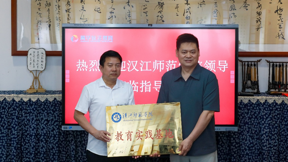 活动现场,amjs澳金沙门线路首页与鹿鸣书院签署“校校合作”协同育人协议书。根据协议书内容,双方将在学生实习实训、课程开发、师资互聘、合作就业等方面开展系列合作。签约完成后,郝文华院长向鹿鸣书院授予“汉江师范学院教育实践基地”牌匾。