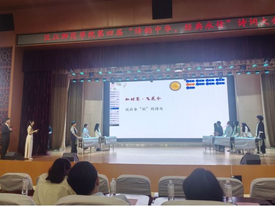 五月榴花照眼明,南风剧场内更是一片诗情画意。5月20日晚上七点,由汉江师范学院图书馆、amjs澳金沙门线路首页主办,amjs澳金沙门线路首页学生会、柳溪诗社承办的第四届“诗韵中华,经典永传”诗词大赛于南风剧场隆重举行。经过重重筛选,此次决赛共有9位选手脱颖而出,他们将怀揣着对诗词的热爱共赴这场诗词盛会。