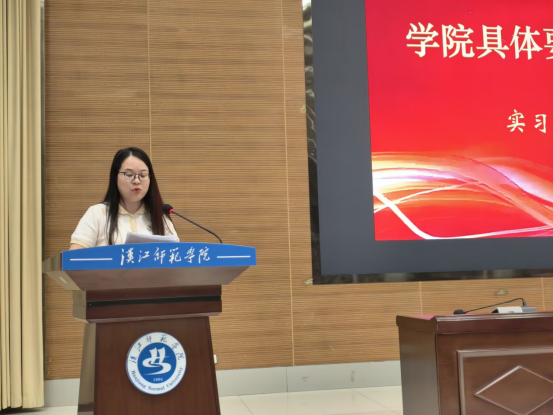 实习指导教师代表潘龚凌子从专业实践角度为学生提供具体建议。她鼓励学生将课堂所学专业知识与实习岗位实际任务深度结合,在实践中重点提升文字处理、沟通协调、问题解决等综合能力,现场耐心解答了学生关于实习内容衔接、考核细节把握等方面的疑问,为学生扫清实习认知障碍。