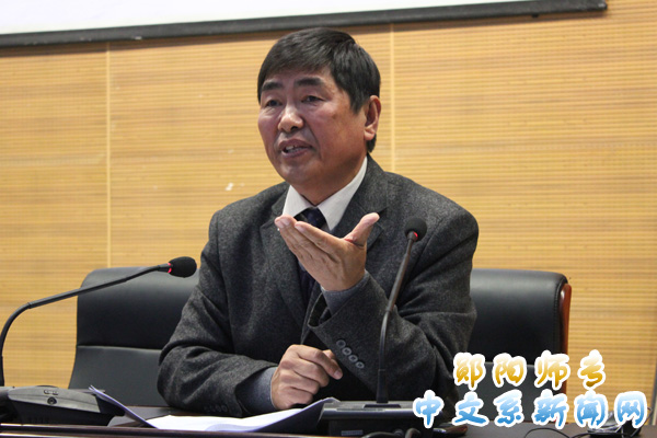 傅广典主席首先表达了他对郧阳文化的热爱,接着他从郧阳文化与汉江文化,郧阳文化的价值体系以及郧阳文化的研究三个方面来剖析郧阳文化。他说,作为地域文化的典型代表,郧阳文化积淀深厚,内涵丰富,他希望我校学生能够对郧阳文化做更深入的研究。