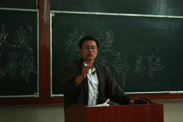 本网讯 记者张炳华 陈彦卿报道:“中国政府是世界上最有钱的政府,也是世界上日子最好过的政府……”5月21日上午,《郧阳师专学报》编辑部主任饶咬成教授应中文系邀请,在职大阶一教室作了一场题为“中国国家形象素描”的讲座。