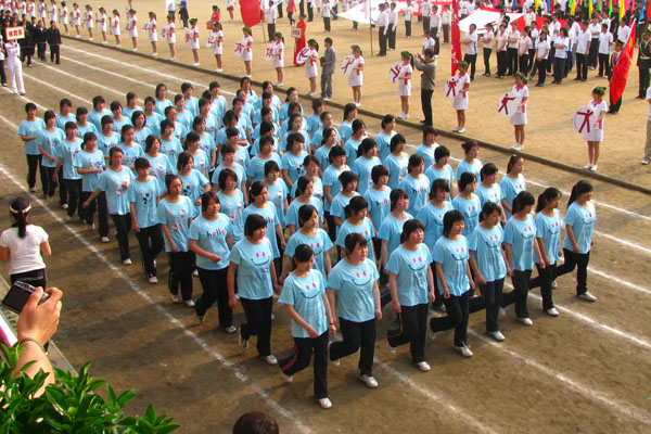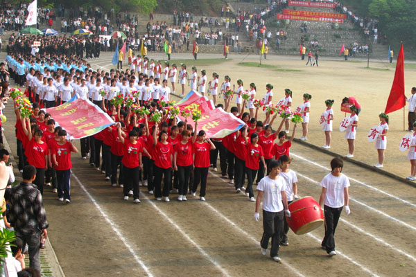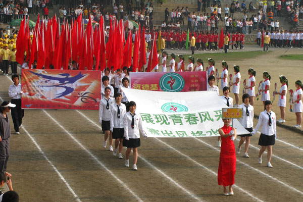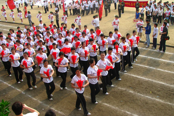 首先各系及各代表队进行了开幕式表演,中文系秉着“展现青春风采,赛出风采水平”的宗旨走向主席台,紧随其后的是红旗方阵,鲜艳的红旗迎风飘扬呈现出中文学子奋发向上的精神。排成“中”字的帽子方阵阵别具一格,赢得同学们的欢呼。经典的红色扇子方阵象征着中文系的事业蒸蒸日上。“蓝色”的运动员代表队精神抖擞,为开幕式增添了一道亮丽的风景,获得了在场领导和观众的阵阵掌声。