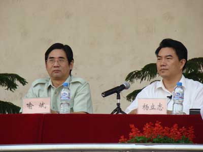 校党委书记喻斌教授(左)、校长杨立志教授(右)出席大会 ·刘刚 摄