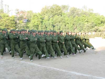 本网讯,9月20日下午,我校举办2007级新生军训队列考核活动。我系5个排,共400余名新生在这次考核中表现优秀。