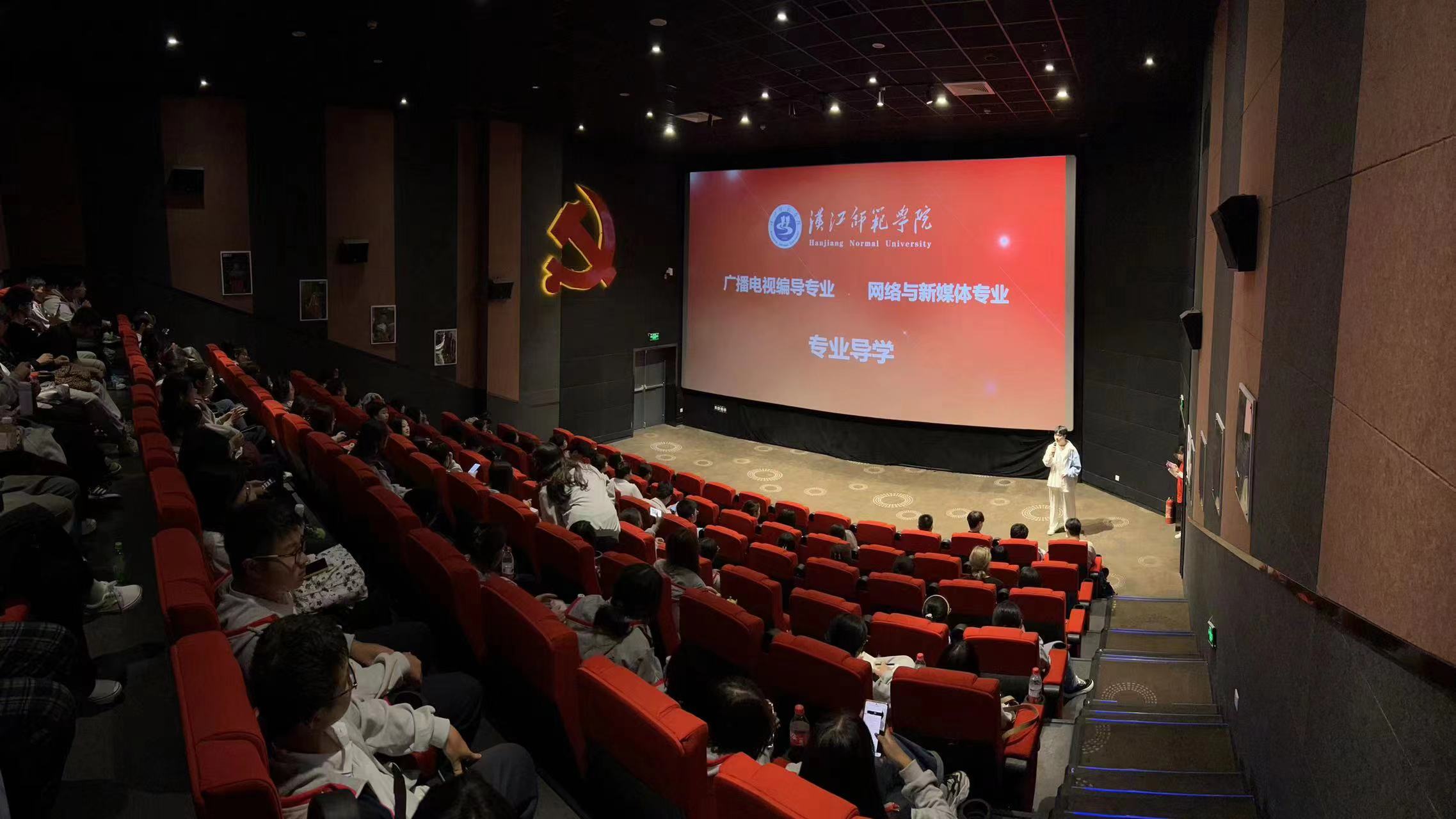 2023年9月26日下午,amjs澳金沙门线路首页广播电视编导和网络与新媒体专业的专业导学课程在实习基地茅箭区“四史”教育影城开启第一课。新闻传播教研室全体教师和两个专业95名新生参加了本次活动。