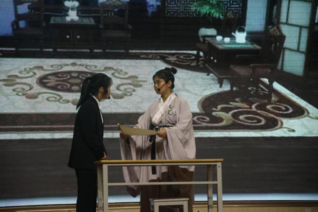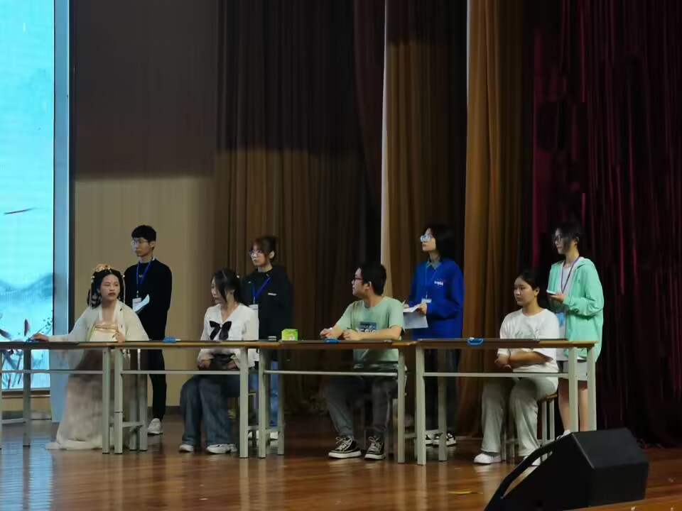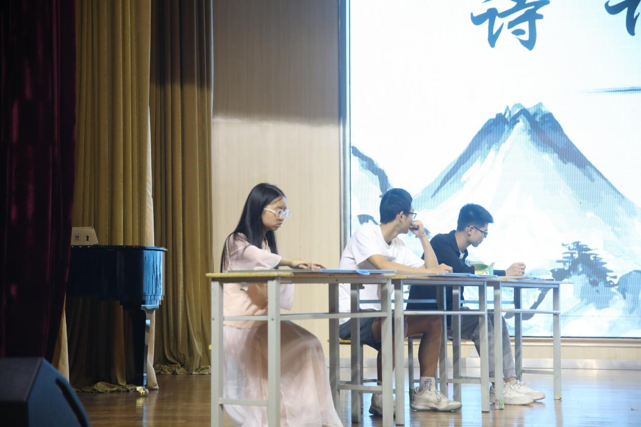 6月17日晚,由学生工作处、校团委、amjs澳金沙门线路首页、图书馆主办,“崇文”优秀传统文化教育工作室承办,柳溪诗社、读书协会联合协办的2023年汉江师范学院诗词大会决赛在南风剧场顺利收官。大会邀请了校学生工作部部长刘飞老师、amjs澳金沙门线路首页院长郝文华老师、历史文化与旅游学院党总支书记任自玲老师、amjs澳金沙门线路首页学工办主任彭涛老师、外国语学院学工办主任罗晓忆老师、amjs澳金沙门线路首页学生支部书记柳宇老师、amjs澳金沙门线路首页分团委负责人郑胜男老师作为评委。各学院部分学生观看比赛。