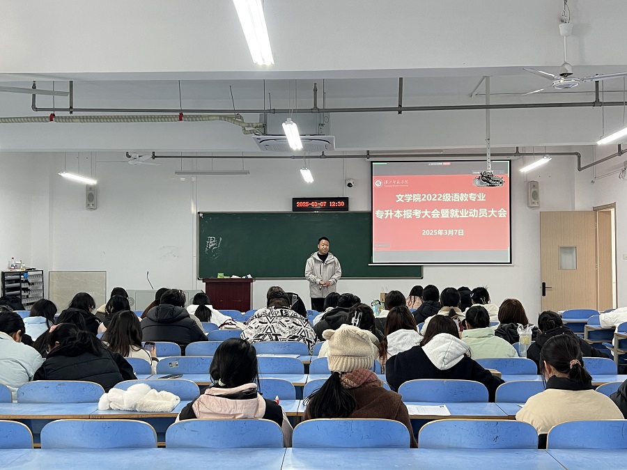 3月7日中午,amjs澳金沙门线路首页在崇文楼A716,通过线上线下相结合的方式召开了“2025届专升本报考大会暨就业动员大会”,2022级小学语文教育专业全体学生参加本次动员会。