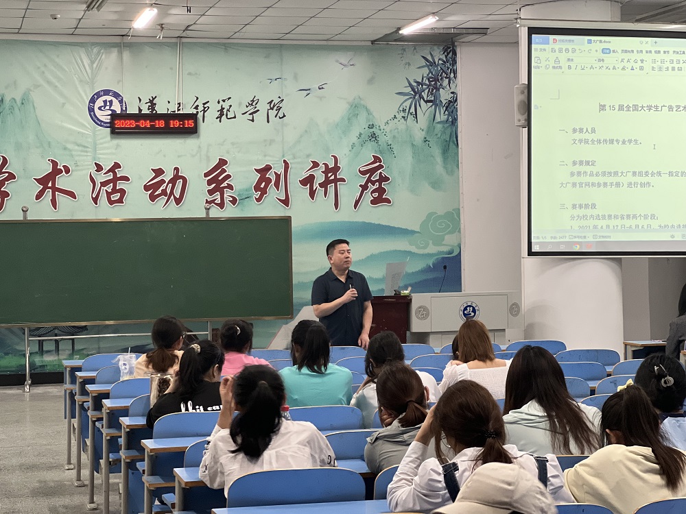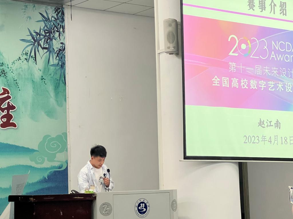 最后,赵江南老师为大家介绍第十一届未来设计师·全国高校数字艺术设计大赛的概况和参赛流程,讲解了比赛的主要内容和注意事项。