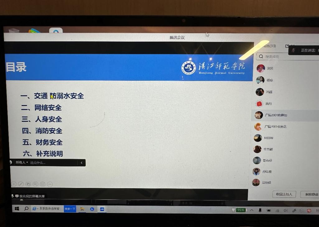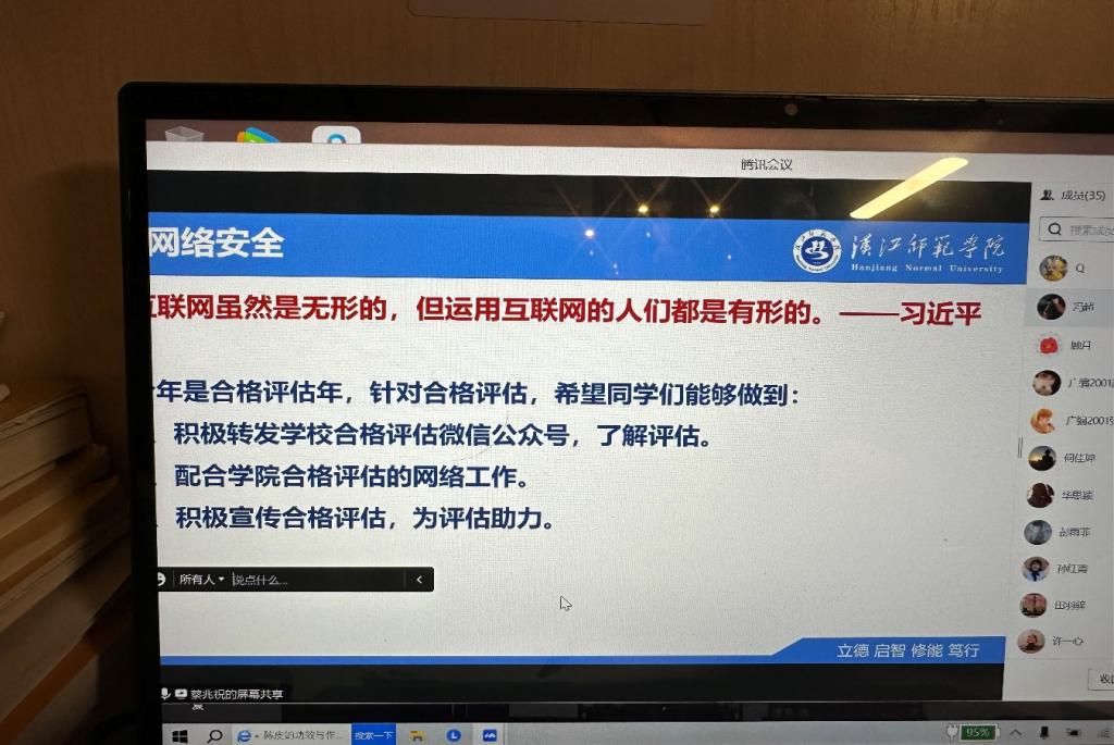 首先,蔡老师从六个方面向大家讲解了开学前的相关准备工作以及安全提醒事项,蔡老师要求大家一定要做好人身安全防护,有情况及时联系、报备。针对今年的合格评估,蔡老师对amjs澳金沙门线路首页情况进行介绍,要求大家配合相关工作。