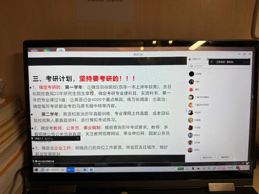 其次,2020级作为毕业年级,蔡老师也从就业、考研等方面向大家详细做了相关讲解,要求大家做好规划,合理安排自己的学习、实习、就业的时间。同时,针对今年的研究生考试,蔡老师特意叮嘱,要求大家选好学校,做好备考。