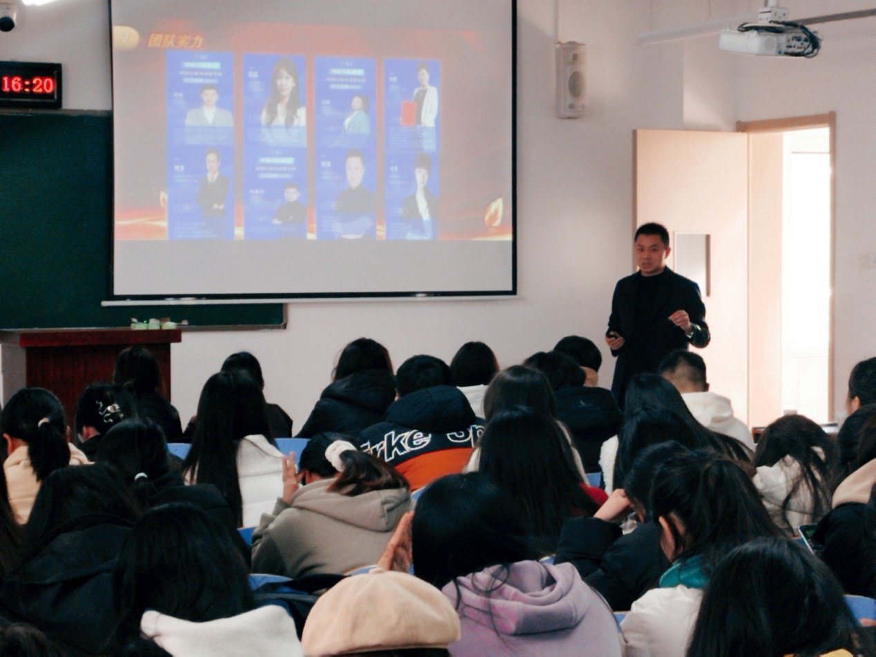 首先,郝总向同学们介绍了关于企业的历史、分站点、平台的资源,以及团队实力和服务案例,让同学们深入了解一个大型公司直播运营背后的状况以更好地找准出发点去提升自己的能力,鼓励大家多思多想,朝着自己的目标前进。随后,郝总向大家详细讲解了打造大型政商KA品牌标签短视频矩阵及直播矩阵的方法,并从“三有三无”和“三多三少”两方面深入分析了互联网直播的营销现状,以及各行业的互联网营销案例。最后,新闻传播教研室赵彦龙老师做了总结。